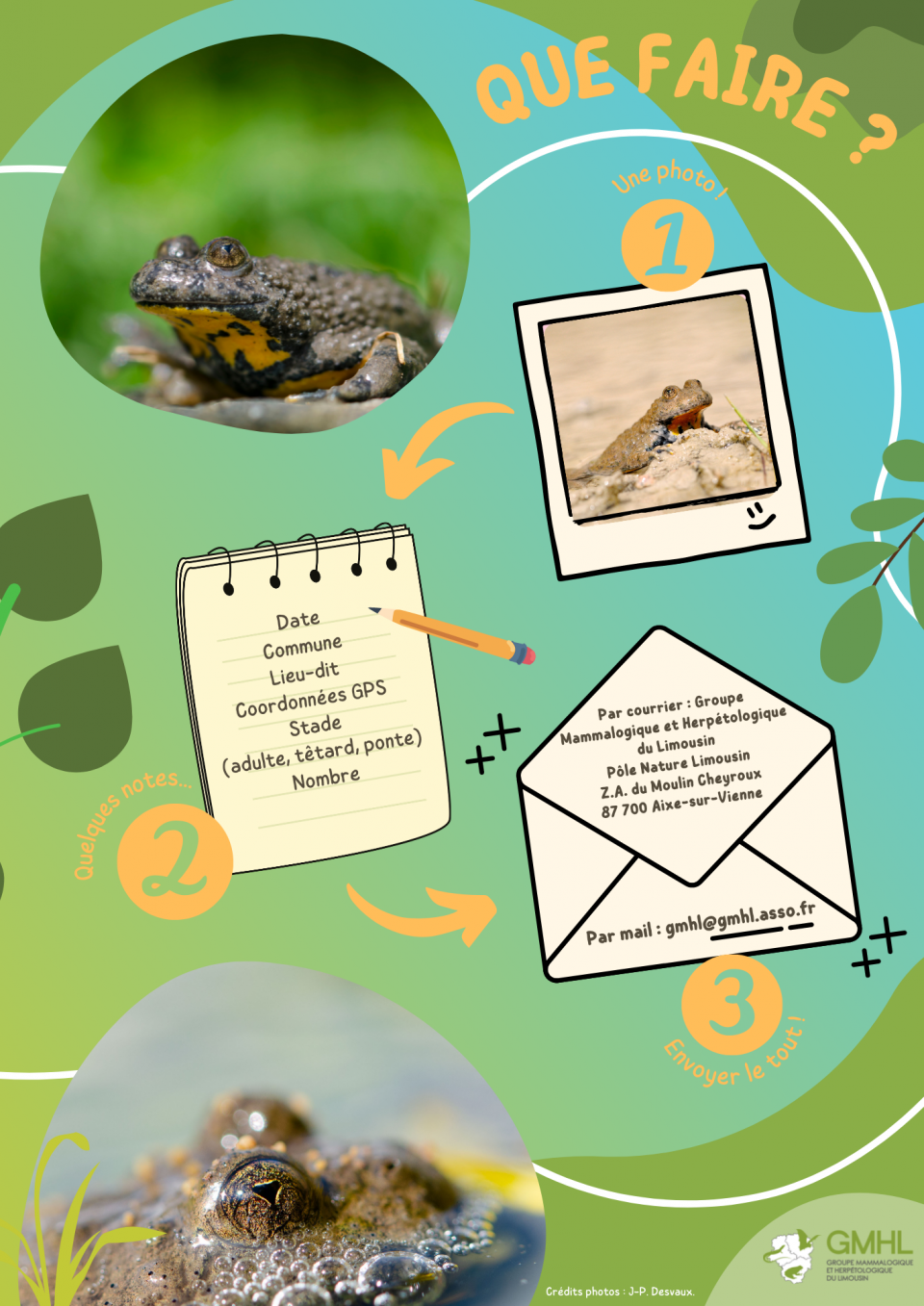 Le GMHL anime le Plan Régional d’Actions pour le Sonneur à ventre jaune à l’échelle du Limousin, en collaboration avec la DREAL Nouvelle-Aquitaine et les associations partenaire de la grande région : Cistude Nature et Poitou-Charentes Nature.